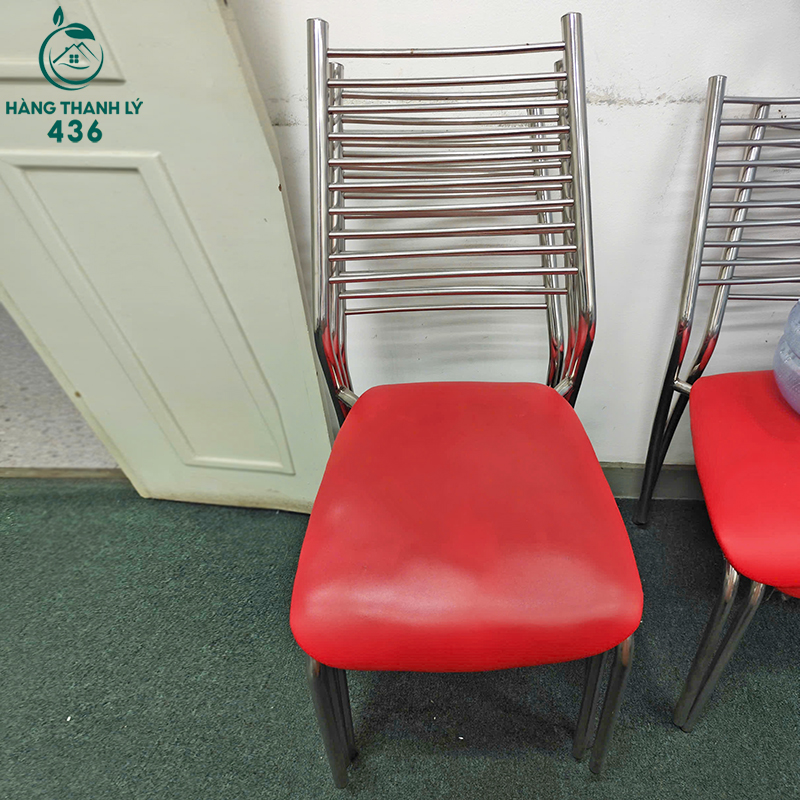 Thanh Lý Ghế Inox Đệm Đỏ Bọc Da Hàng Còn Mới Đến 90%