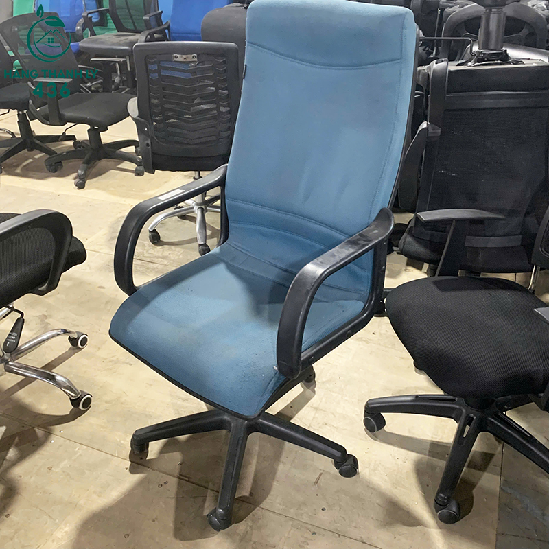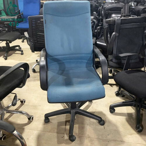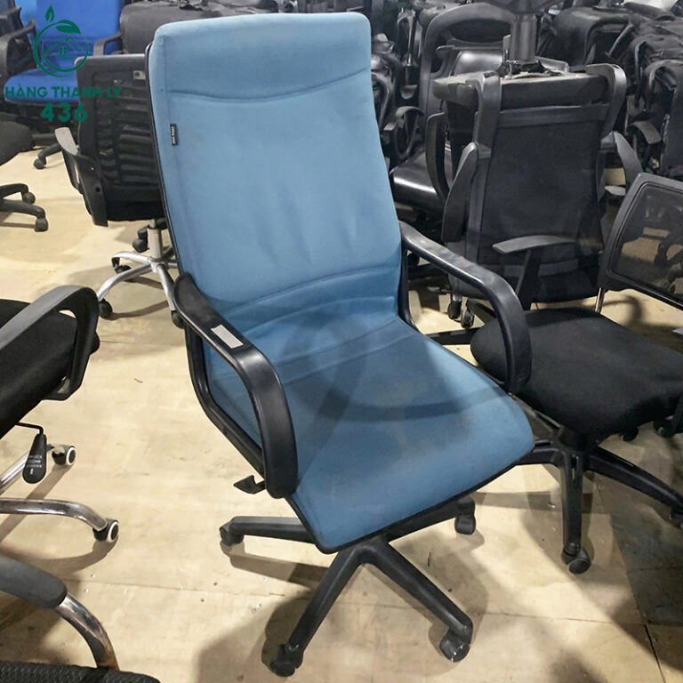 Mô Tả: Mẫu ghế xoay văn phòng lưng cao này là giải pháp tuyệt vời cho những ai phải làm việc liên tục nhiều giờ liền. Thiết kế lưng tựa cao giúp nâng đỡ toàn bộ cột sống và cổ, giảm thiểu đáng kể tình trạng đau mỏi vai gáy. Ghế được bọc lớp vải nỉ màu xanh dương nhẹ nhàng, tạo cảm giác chuyên nghiệp và sạch sẽ cho không gian làm việc. Phần khung chân nhựa đúc chắc chắn tích hợp bánh xe xoay 360 độ linh hoạt, giúp bạn di chuyển dễ dàng trong khu vực văn phòng. Tay vịn hai bên được thiết kế vòng cung mềm mại, hỗ trợ tư thế để tay thoải mái khi đánh máy hoặc nghỉ ngơi. Đây là dòng ghế cũ chất lượng cao, bền bỉ và cực kỳ tiết kiệm chi phí.