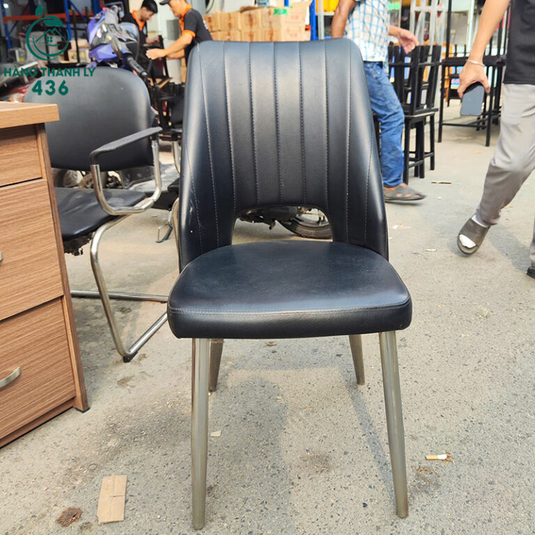 Mô Tả: Mẫu ghế văn phòng cũ này phù hợp sử dụng cho bàn làm việc cá nhân, phòng làm việc tại nhà, phòng họp nhỏ hoặc khu vực tiếp khách. Ghế được bọc da màu đen, bề mặt dễ lau chùi, hạn chế bám bụi khi sử dụng hằng ngày. Phần lưng tựa cong nhẹ giúp ngồi đúng tư thế, giảm mỏi lưng khi ngồi lâu. Đệm ngồi êm, độ đàn hồi ổn định, tạo cảm giác thoải mái trong suốt thời gian làm việc. Chân inox chịu lực tốt, đứng vững, sử dụng ổn định. Ghế đã qua sử dụng nhưng còn đẹp, phù hợp nhu cầu tiết kiệm chi phí.