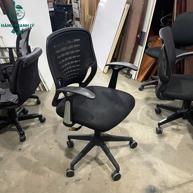 - Mô Tả: Mẫu ghế xoay văn phòng lưng lưới cũ này là giải pháp tối ưu cho mùa hè nóng bức, mang lại sự thông thoáng tuyệt đối cho người ngồi. Thiết kế lưng lưới giúp lưu thông không khí, giảm thiểu tình trạng ra mồ hôi lưng khi làm việc trong thời gian dài. Nệm ngồi được bọc vải nỉ êm ái, tạo cảm giác dễ chịu. Ghế có đầy đủ tay vịn chắc chắn và chân xoay hình sao linh hoạt, giúp bạn di chuyển dễ dàng quanh khu vực làm việc. Hệ thống ben hơi điều chỉnh độ cao hoạt động mượt mà, phù hợp với nhiều vóc dáng người ngồi. Đây là lựa chọn cực kỳ kinh tế cho các công ty hoặc cá nhân muốn trang bị góc làm việc tiện nghi.