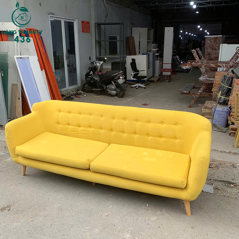 - Mô Tả: Chiếc sofa băng dài này là điểm nhấn cực kỳ ấn tượng cho phòng khách, văn phòng, hoặc khu vực chờ của cửa hàng nhờ màu vàng nổi bật. Sofa dài 2m1, thoải mái cho 3 người ngồi, mang lại cảm giác êm ái, thư giãn nhờ đệm mút dày và vải bọc mềm mại. Thiết kế lưng tựa rút nút theo phong cách hiện đại nhưng vẫn sang trọng. Chân ghế gỗ tự nhiên chắc chắn, giúp dễ dàng vệ sinh sàn nhà. Chiếc ghế này không chỉ đẹp mà còn cực kỳ bền bỉ và dễ phối hợp với các đồ nội thất khác.