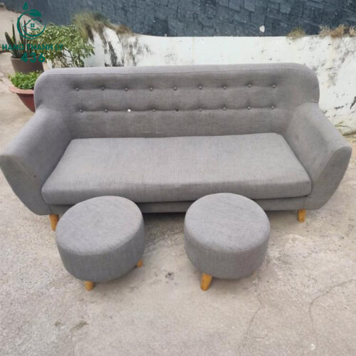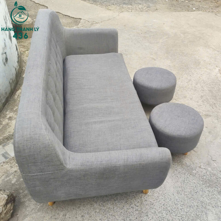 Mô Tả: Chiếc sofa băng dài 2-3 chỗ ngồi này rất phù hợp cho không gian phòng khách nhỏ, văn phòng làm việc hay khu vực tiếp khách. Thiết kế đơn giản, hiện đại với màu xám trung tính dễ dàng kết hợp với mọi phong cách nội thất. Sofa được bọc lớp vải nỉ dày dặn, đệm mút bên trong có độ đàn hồi cao, ngồi rất êm ái và thoải mái. Kèm theo là 2 chiếc đôn tròn nhỏ xinh, tiện lợi dùng làm ghế phụ hoặc kê chân thư giãn. Dù là hàng thanh lý, bộ sofa này vẫn giữ được vẻ ngoài sạch sẽ, mới đẹp đến 90%. Mua bộ sofa này là một lựa chọn thông minh để bạn tiết kiệm chi phí nhưng vẫn đảm bảo có được bộ bàn ghế phòng khách đẹp và bền bỉ.