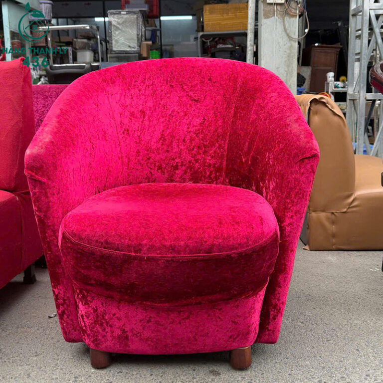 Mô Tả: Mẫu ghế sofa đơn cũ thiết kế bo cong ôm lưng, tạo cảm giác ngồi thoải mái và dễ chịu khi sử dụng lâu. Ghế bọc nhung màu hồng nổi bật, bề mặt mềm mịn, phù hợp làm điểm nhấn cho quán cafe, trà sữa, tiệm nail hoặc phòng chờ. Phần nệm dày, đàn hồi tốt, form ghế chắc chắn, kê gọn không chiếm nhiều diện tích. Dáng ghế tròn giúp không gian mềm mại hơn, dễ phối với nhiều kiểu bàn thấp và phong cách trang trí khác nhau.