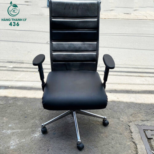 - Mô tả: Ghế văn phòng cũ có thiết kế hiện đại với phần tựa lưng cao, bọc da simili đen mang lại vẻ sang trọng. Ghế có đệm ngồi dày dặn, chân ghế làm từ kim loại chắc chắn, trang bị bánh xe giúp di chuyển dễ dàng. Tay vịn của ghế tạo sự thoải mái cho người ngồi trong thời gian dài. Ghế này phù hợp cho không gian làm việc tại văn phòng hoặc gia đình, mang lại sự tiện lợi và thoải mái với giá cả hợp lý khi mua tại Hàng Thanh Lý 436.