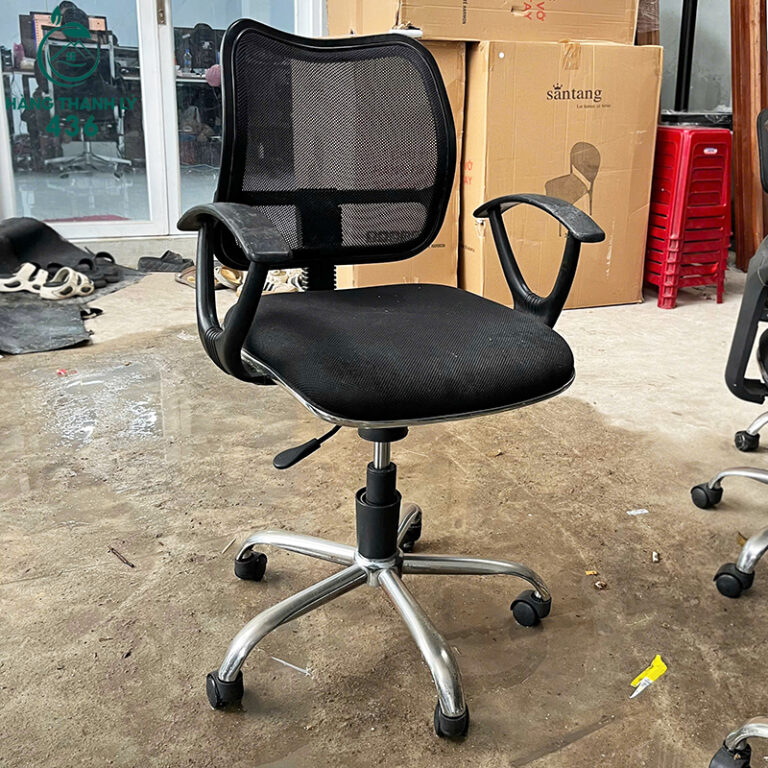 - Chất Liệu: Ghế lưng lưới, chân xoay kim loại