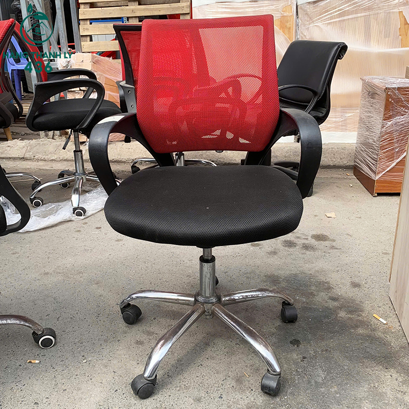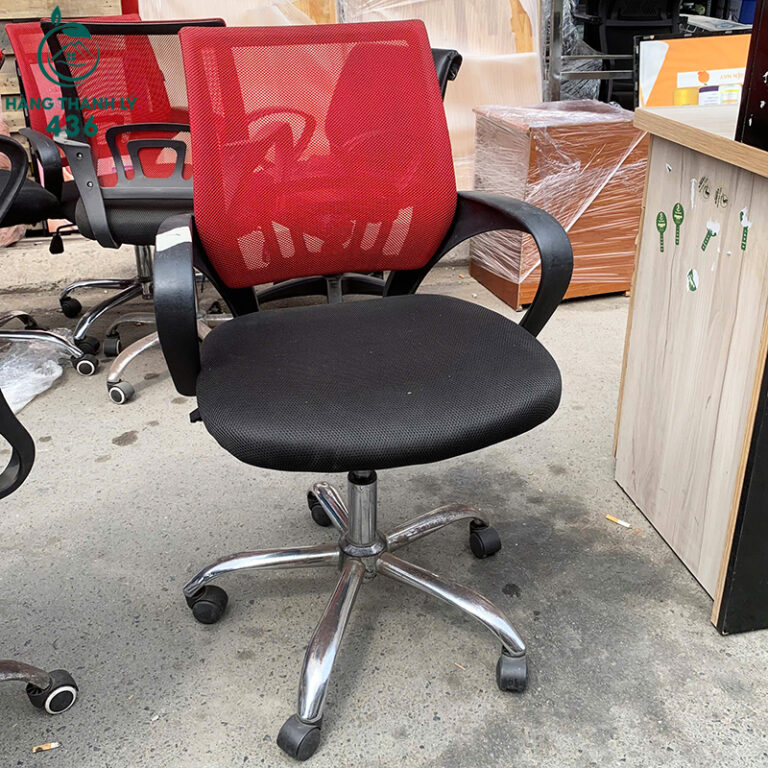 Mô Tả: Mẫu ghế văn phòng lưng lưới cũ thiết kế đơn giản, phù hợp sử dụng cho nhân viên văn phòng, phòng làm việc tại nhà hoặc khu vực làm việc chung. Phần lưng lưới màu đỏ thoáng khí, giúp ngồi lâu không bị nóng lưng. Đệm ngồi bọc nệm dày, tạo cảm giác êm khi làm việc nhiều giờ. Ghế có tay vịn nhựa chắc chắn, trụ xoay nâng hạ linh hoạt và bánh xe di chuyển dễ dàng trên nhiều loại sàn. Ghế văn phòng thanh lý còn sử dụng tốt, là lựa chọn tiết kiệm chi phí cho doanh nghiệp và cá nhân.
