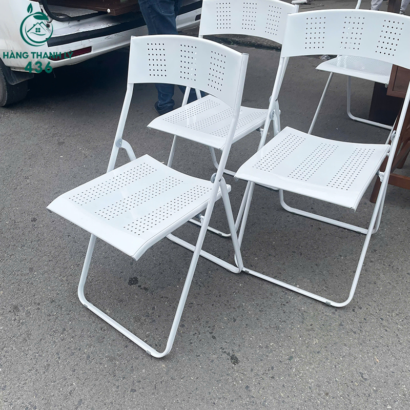Ghế Xếp Sắt Trắng Cũ Dễ Vệ Sinh Và Cất Gọn