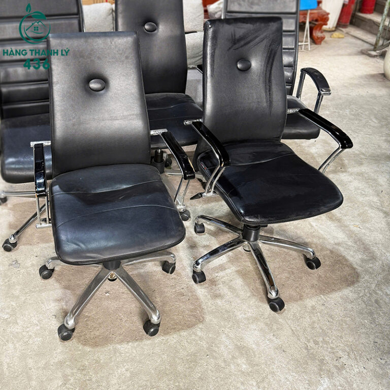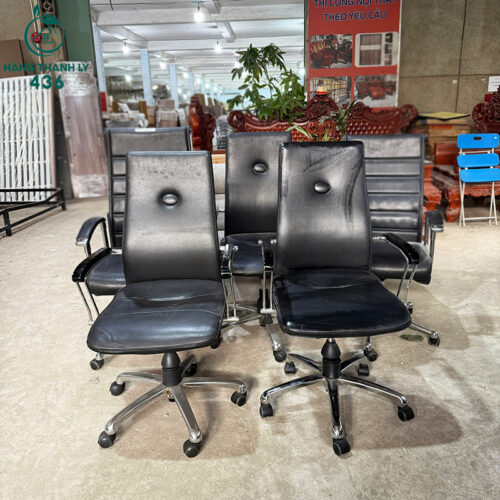 Ghế Xoay Cũ Bọc Da Màu Đen Lưng Cao Có Tay Vịn