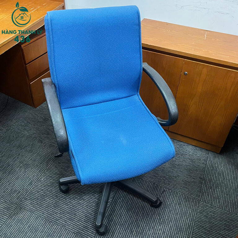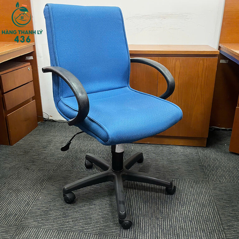 - Mô Tả: Chiếc ghế xoay này là giải pháp tiết kiệm chi phí cho mọi không gian làm việc. Với thiết kế lưng trung, ghế hỗ trợ tốt cho phần lưng dưới, giúp bạn ngồi thoải mái trong nhiều giờ liền mà không bị mỏi. Tay vịn nhựa chắc chắn giúp bạn gác tay thư giãn, đồng thời mâm ghế có cần gạt để điều chỉnh độ cao lên xuống linh hoạt, phù hợp với mọi loại bàn làm việc. Ghế được bọc vải bố màu xanh dương nổi bật, dễ dàng hòa hợp với nhiều phong cách văn phòng khác nhau. Chân xoay có bánh xe giúp bạn di chuyển nhẹ nhàng, dễ dàng lấy tài liệu xung quanh. Mua hàng thanh lý là cách thông minh để trang bị nội thất hiệu quả.