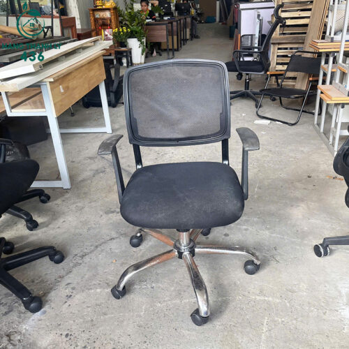 Mô Tả: Mẫu ghế xoay văn phòng này là giải pháp tối ưu cho không gian làm việc chuyên nghiệp với mức chi phí tiết kiệm. Sản phẩm nổi bật với phần lưng ghế bọc lưới cao cấp, mang lại sự thông thoáng tối đa, giúp người ngồi luôn cảm thấy thoải mái và không bị bí bách dù làm việc trong thời gian dài. Đệm ngồi được bọc vải nỉ dày dặn, có độ đàn hồi tốt, hạn chế tình trạng xẹp lún. Điểm nhấn của ghế là phần chân xoay làm từ inox sáng bóng, không chỉ tăng tính thẩm mỹ mà còn đảm bảo khả năng chịu lực vượt trội và chống gỉ sét hiệu quả. Ghế tích hợp đầy đủ các tính năng linh hoạt như cần gạt điều chỉnh độ cao và hệ thống bánh xe di chuyển mượt mà, phù hợp với nhiều loại bàn làm việc văn phòng hiện nay.