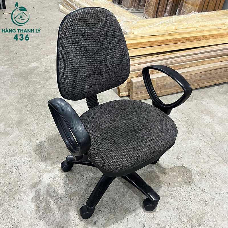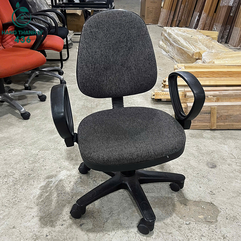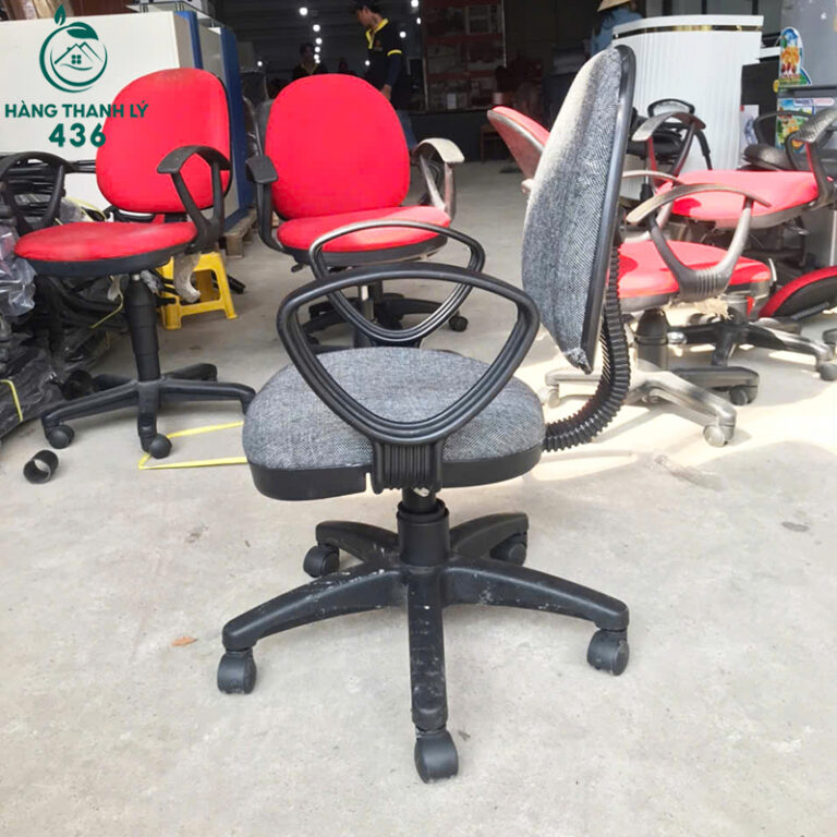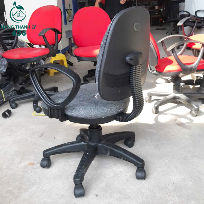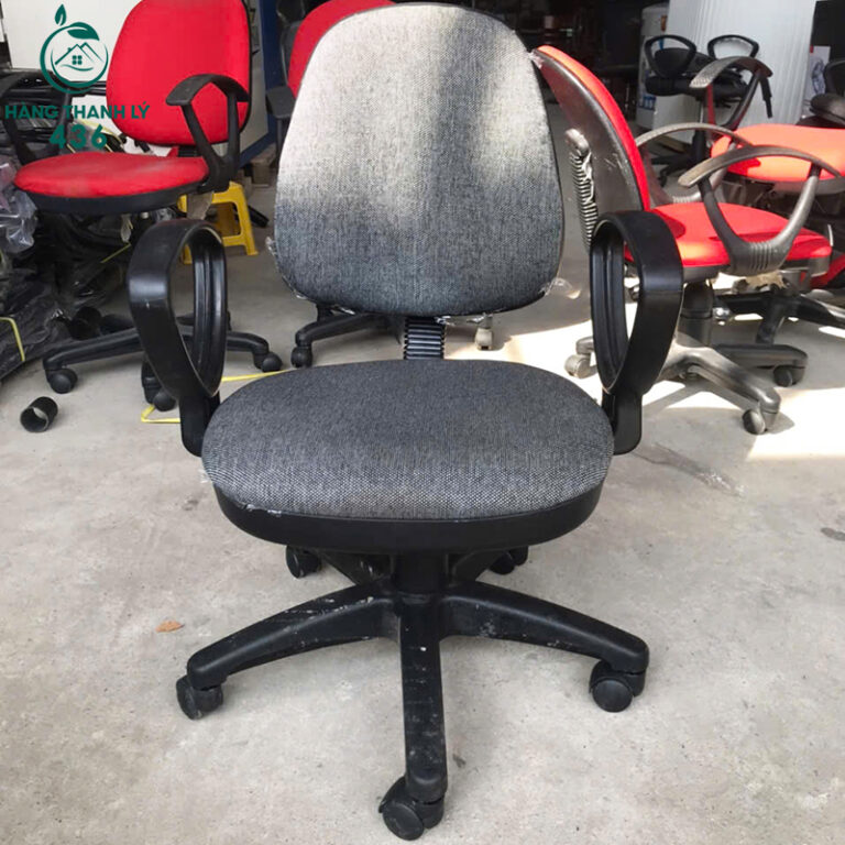 - Mô Tả: Chiếc ghế xoay văn phòng lưng trung này là sự lựa chọn phổ thông và hiệu quả cho mọi vị trí nhân viên trong văn phòng. Ghế có thiết kế lưng trung, ôm vừa vặn lưng người ngồi, cùng với đệm ngồi và tựa lưng được bọc vải màu xám đen dày dặn, mang lại cảm giác êm ái và hạn chế bám bẩn. Ghế được trang bị đầy đủ chức năng xoay 360 độ và cần gạt điều chỉnh độ cao linh hoạt, giúp người dùng dễ dàng tìm được tư thế ngồi thoải mái nhất. Chân nhựa cứng màu đen cùng bánh xe giúp ghế di chuyển nhẹ nhàng, bền bỉ và dễ dàng vệ sinh. Với kiểu dáng đơn giản, chắc chắn, đây là giải pháp thanh lý nội thất giúp bạn trang bị đồng bộ ghế cho văn phòng với chi phí cực kỳ tối ưu.