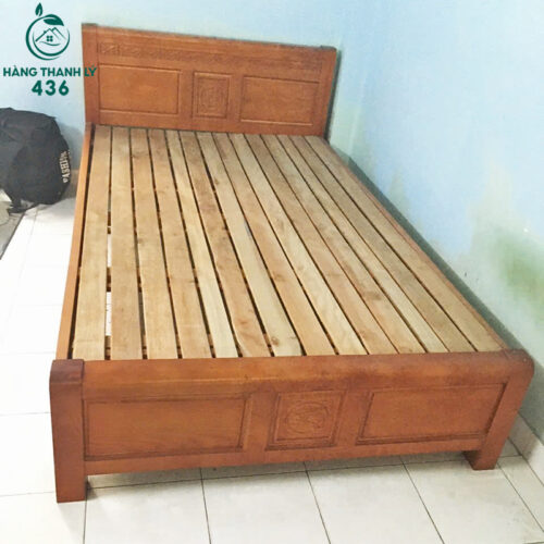 - Mô tả: Giường gỗ thiết kế đơn giản nhưng chắc chắn, phù hợp cho phòng ngủ gia đình hoặc nhà trọ. Phần mặt giường được làm từ các thanh gỗ thẳng đều, đảm bảo độ thông thoáng và dễ dàng vệ sinh. Thành giường được chạm khắc nhẹ, tạo điểm nhấn tinh tế. Mẫu giường đơn tối giản, dễ dàng kết hợp với nhiều loại nệm khác nhau.