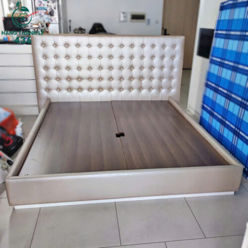 - Mô tả: Giường có thiết kế hiện đại và sang trọng, với phần đầu giường cao tạo cảm giác thoải mái khi ngồi. Bề mặt giường rộng rãi, phù hợp cho nhiều không gian phòng ngủ khác nhau. Giường có khung gỗ chắc chắn, đảm bảo độ bền và ổn định trong quá trình sử dụng. Đây là một lựa chọn lý tưởng cho những ai đang tìm kiếm một chiếc giường vừa thẩm mỹ, vừa bền đẹp, mang lại sự thoải mái và thư giãn khi nghỉ ngơi.