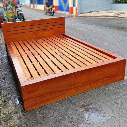 - Mô tả: Giường gỗ có thiết kế đơn giản, chắc chắn, mang đến cảm giác ấm cúng cho không gian. Khung giường làm từ gỗ tự nhiên, chịu lực tốt, không bị cong vênh hay mối mọt sau thời gian sử dụng. Bề mặt giường được phủ lớp sơn bóng giúp tăng độ bền, dễ lau chùi. Phần đầu giường thiết kế cao, có điểm nhấn với các đường cắt trang trí, tạo cảm giác sang trọng.