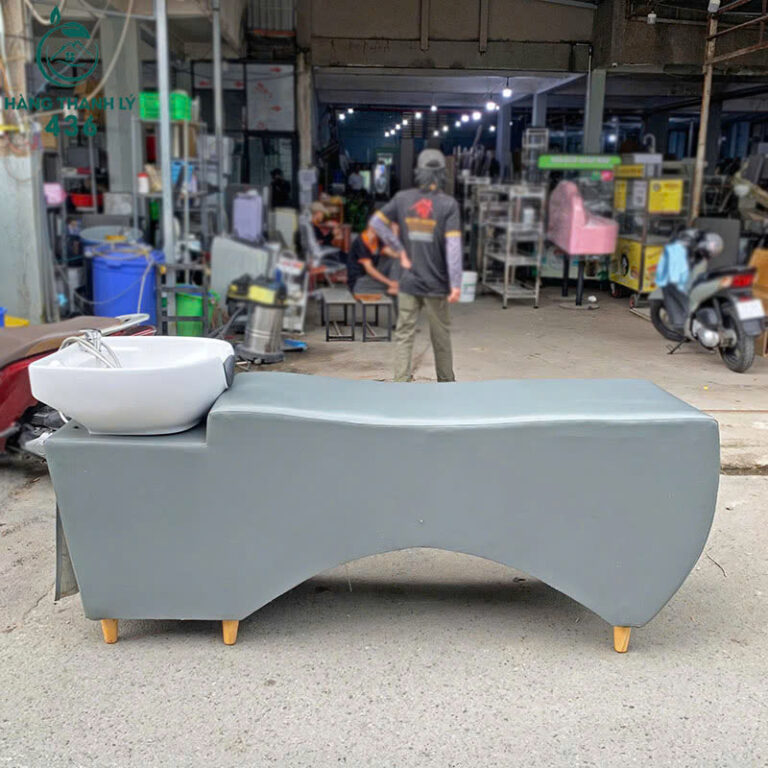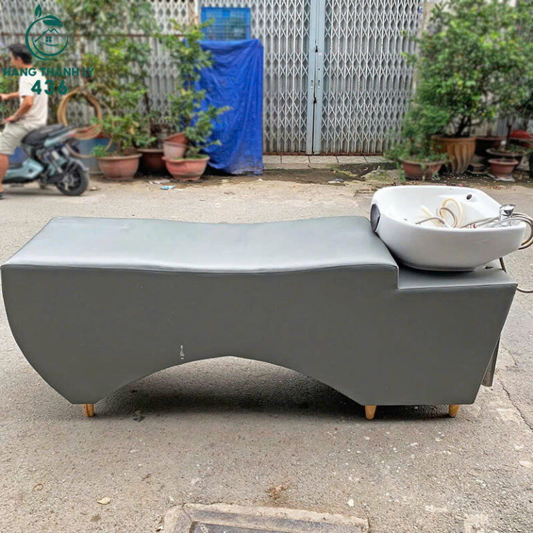 Giường Gội Cũ Salon Bọc Đệm Da Màu Xám Kèm Bồn Rửa Sứ Trắng