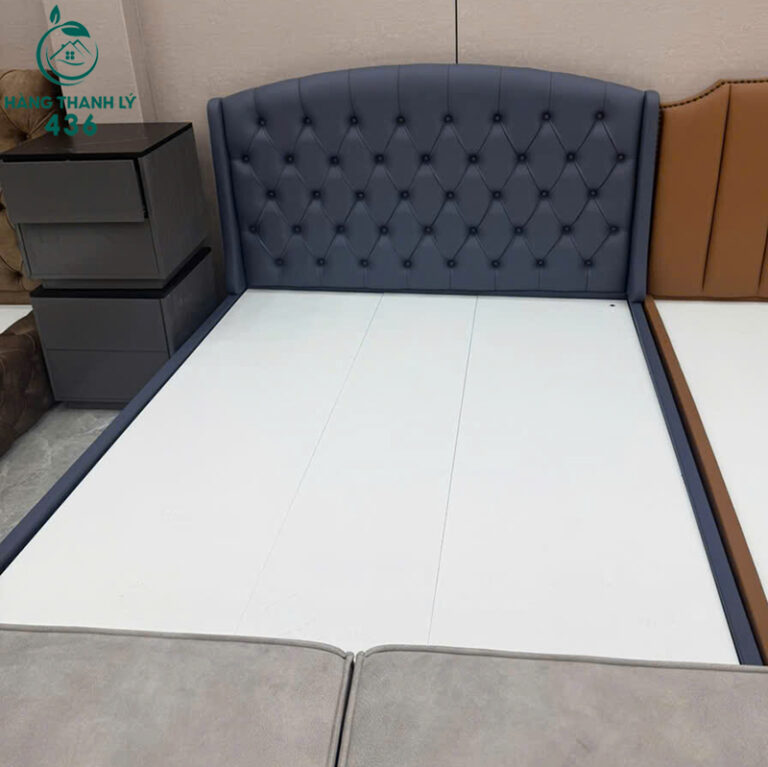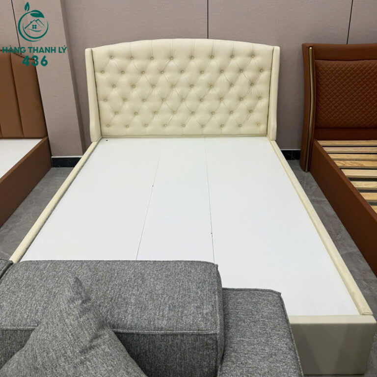 - Mô Tả: Mua giường cũ là giải pháp thông minh giúp bạn tiết kiệm được khoản tiền lớn mà vẫn sở hữu được món đồ nội thất chất lượng, đầy đủ công năng. Chiếc giường bọc da này có kích thước chuẩn, rộng rãi cho hai người nằm thoải mái. Phần đầu giường được bọc da êm ái, thiết kế rút nút cổ điển tạo sự sang trọng, giúp bạn thoải mái tựa lưng đọc sách hay xem phim trước khi ngủ. Giường có khung sườn chắc chắn, không bị rung lắc, đảm bảo giấc ngủ ngon và sâu. Lợi ích lớn nhất là bạn có thể tận hưởng không gian phòng ngủ đẹp, tiện nghi với chi phí cực kỳ phải chăng.