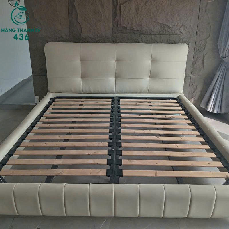 Thanh Lý Giường Ngủ Bọc Nệm Da 1m8 Màu Kem Mới 90%