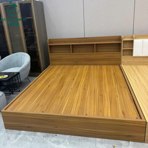 - Mô Tả: Chiếc giường hộp này là sự kết hợp hoàn hảo giữa không gian nghỉ ngơi và khu vực lưu trữ, rất lý tưởng cho các căn hộ nhỏ cần tối ưu diện tích. Phần đầu giường được thiết kế thông minh, tích hợp các ngăn kệ mở, giúp bạn dễ dàng đặt sách, đồng hồ báo thức, điện thoại hoặc đèn ngủ mà không cần dùng thêm tủ đầu giường. Màu gỗ tối hiện đại, vân gỗ đẹp, mang lại vẻ sang trọng, sạch sẽ cho căn phòng. Khung giường dạng hộp chắc chắn, tạo cảm giác an toàn khi nằm. Chiếc giường đa năng này giúp bạn sắp xếp phòng ngủ gọn gàng và tiện nghi hơn rất nhiều.