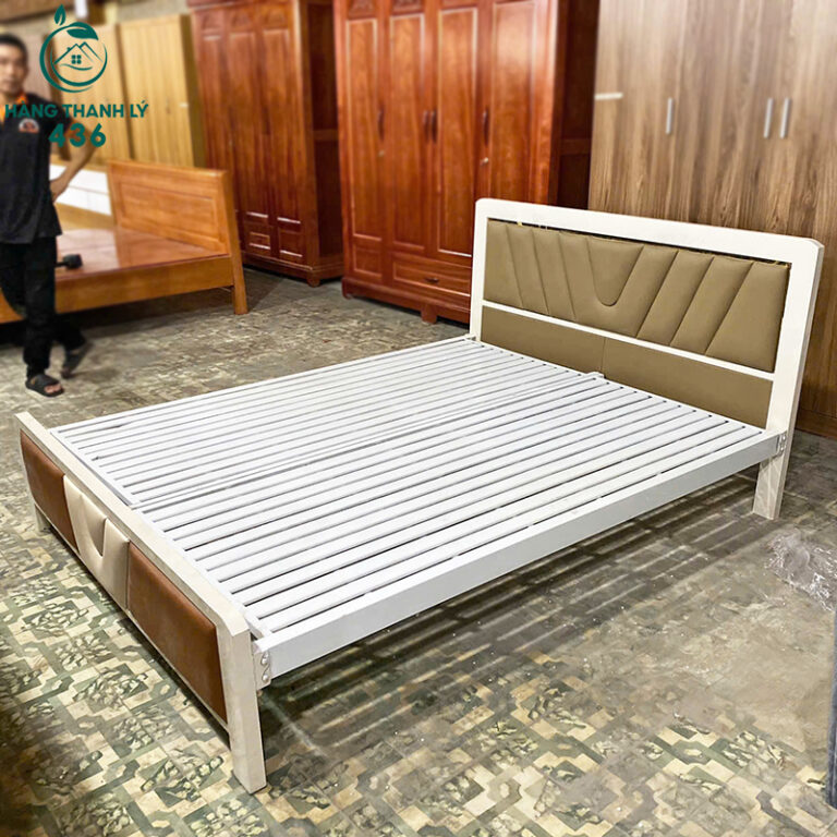 Thanh lý giường sắt ốp da đẹp mới 99% sale giá rẻ