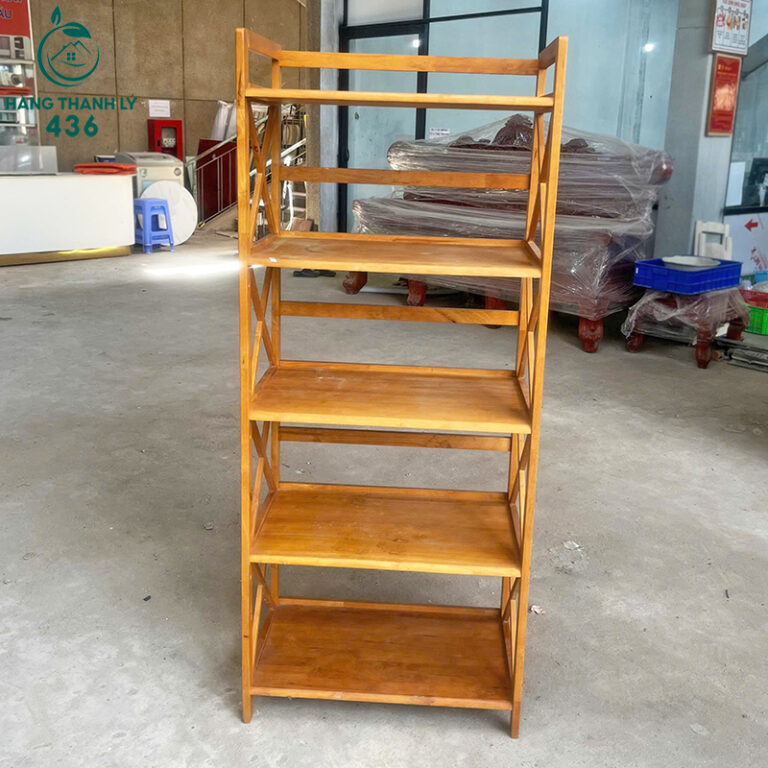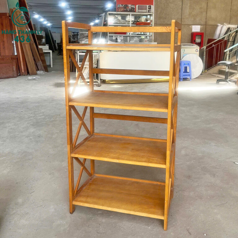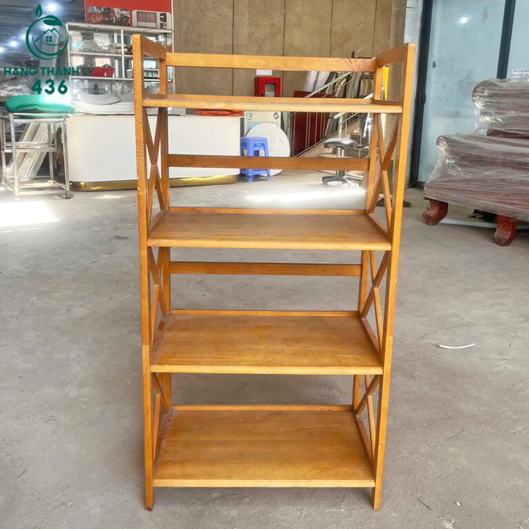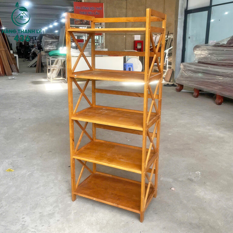 - Mô Tả: Đây là một chiếc kệ gỗ đa năng với thiết kế nhiều tầng, mang phong cách mộc mạc và hiện đại. Toàn bộ kệ được làm từ gỗ tự nhiên, sở hữu màu nâu vàng ấm áp, dễ dàng hòa hợp với nhiều kiểu nội thất. Hai bên hông kệ được gia công họa tiết đan chéo dạng chữ X, vừa tăng tính thẩm mỹ, vừa đảm bảo độ chắc chắn cho cấu trúc. Mỗi tầng có diện tích rộng rãi, phù hợp để đựng sách, đồ trang trí, vật dụng cá nhân hoặc tài liệu văn phòng. Thiết kế kệ hình chữ nhật đứng giúp tận dụng tối đa chiều cao, tiết kiệm diện tích sàn, rất lý tưởng để bố trí trong phòng khách, phòng làm việc, thư viện gia đình hoặc cửa hàng nhỏ.