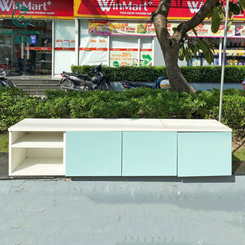 - Mô tả: Kệ tivi cũ với thiết kế đơn giản nhưng hiện đại, màu trắng kết hợp cánh cửa xanh mint tạo nên vẻ đẹp tươi mới, nhẹ nhàng. Với chiều ngang 1m6, sản phẩm có đủ không gian để chứa tivi, các thiết bị điện tử hoặc trang trí thêm các vật dụng khác. Kệ còn có ngăn tủ và kệ mở giúp bạn dễ dàng sắp xếp và lưu trữ các vật dụng một cách gọn gàng. Đây là một sự lựa chọn lý tưởng cho những không gian nội thất hiện đại, phù hợp với nhiều phong cách bài trí.