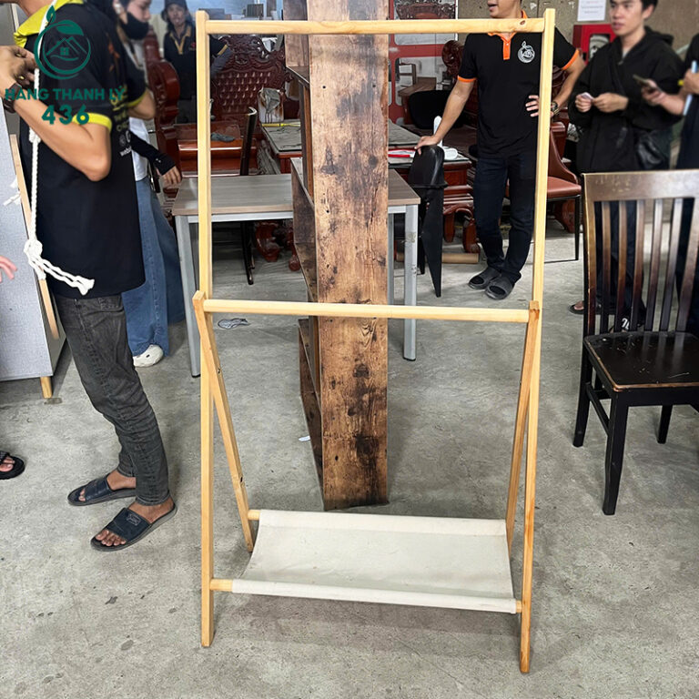 - Mô Tả: Chiếc kệ treo quần áo này là giải pháp gọn gàng cho mọi nhà hoặc shop thời trang. Điểm mạnh của nó là thiết kế chân gấp thông minh, giúp bạn dễ dàng di chuyển hoặc cất gọn khi không cần dùng đến, rất lý tưởng cho căn hộ nhỏ hay những ai thường xuyên thay đổi không gian. Kệ làm bằng gỗ thông tự nhiên đã qua xử lý, đảm bảo độ bền và chịu lực tốt, treo được nhiều quần áo mà không lo bị cong vênh.