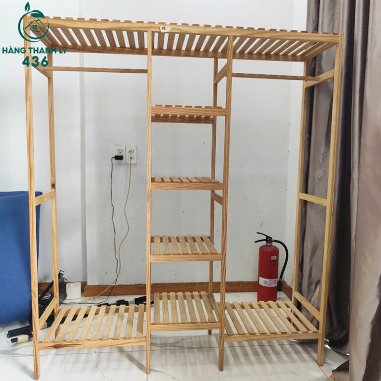 Kệ Treo Quần Áo Gỗ Cũ Thiết Kế Không Cánh Hiện Đại