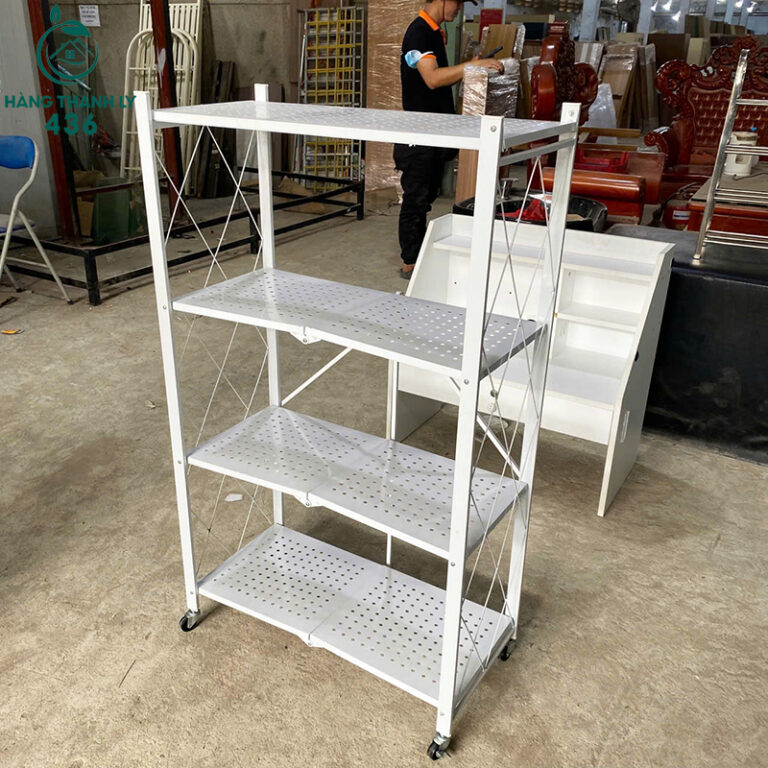 Kệ Trưng Bày Cũ 4 Tầng Lưới Màu Trắng Có Bánh Xe