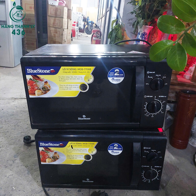 - Mô Tả: Chiếc lò vi sóng Bluestone này là trợ thủ đắc lực trong bếp, giúp bạn hâm nóng thức ăn cực nhanh và tiện lợi. Lò có thiết kế cơ học với núm xoay điều chỉnh công suất và thời gian, rất dễ dùng, ai cũng có thể thao tác được. Chức năng chính là hâm nóng và rã đông, giúp tiết kiệm thời gian chuẩn bị bữa ăn đáng kể. Kích thước lò nhỏ gọn, phù hợp đặt trên bàn bếp hoặc trong không gian bếp nhỏ. Tuy là hàng thanh lý, lò vẫn hoạt động ổn định, bề mặt dễ lau chùi. Mua lò vi sóng cũ giúp bạn có ngay thiết bị nhà bếp thiết yếu với chi phí thấp, rất phù hợp cho sinh viên hoặc gia đình cần đồ điện cơ bản.