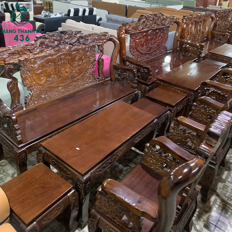 Hàng Thanh Lý 436 đa dạng về mẫu mã, thiết kế, từ phong cách cổ điển cho đến hiện đại, phù hợp với nhiều kiểu trang trí phòng khách khác nhau. Đặc biệt, các bộ salon tay 8, tay 10, tay 12 được làm từ nhiều loại gỗ tự nhiên như gỗ hương, gỗ sồi, gỗ gõ đỏ, hay gỗ xoan đào.