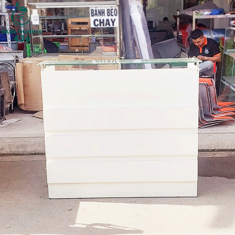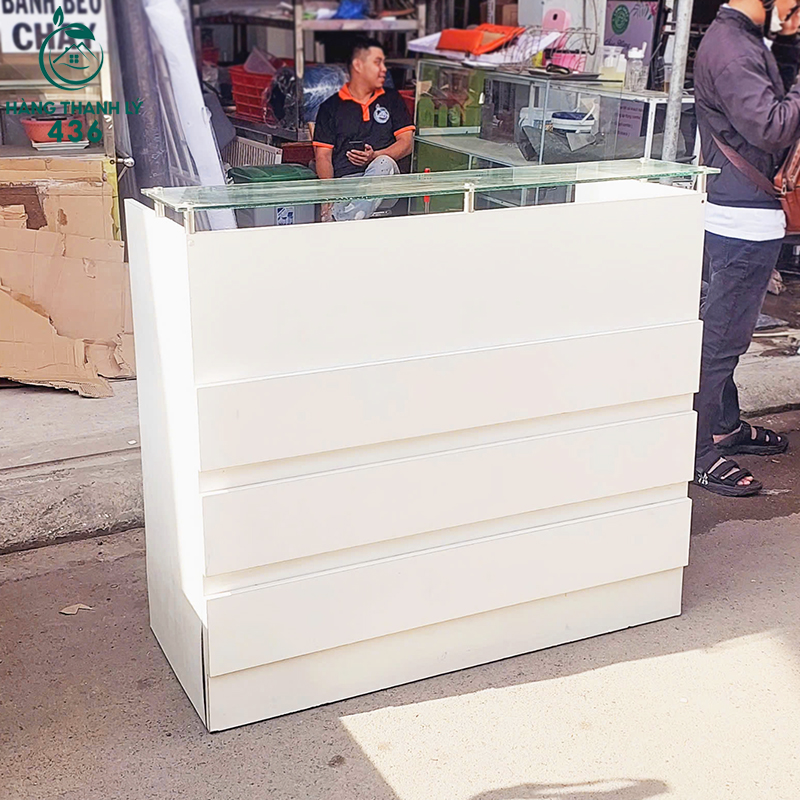 Quầy Lễ Tân Cũ 1M2x1M1 Màu Trắng Mặt Kính Giá Tốt