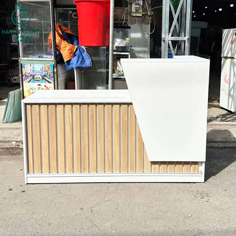 - Mô Tả: Chiếc quầy lễ tân này có thiết kế rất hiện đại và chuyên nghiệp, là điểm nhấn lý tưởng cho khu vực tiếp khách của văn phòng, spa, cửa hàng hoặc quán cà phê. Quầy được phối màu trắng trơn và vân gỗ sọc dọc, tạo cảm giác sang trọng, sạch sẽ và dễ dàng hòa hợp với nhiều phong cách nội thất khác nhau. Bên trong quầy được chia thành nhiều ngăn kệ và ngăn kéo, cung cấp không gian rộng rãi để đặt máy tính, lưu trữ tài liệu, hóa đơn, đảm bảo khu vực làm việc luôn gọn gàng. Mua quầy thanh lý giúp bạn có được món nội thất chất lượng, thẩm mỹ cao với chi phí đầu tư ban đầu rất tiết kiệm.