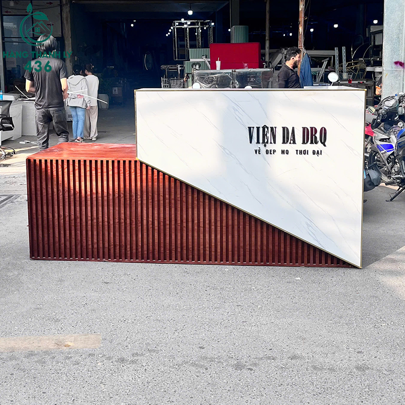 Thanh Lý Quầy Lễ Tân Chữ L Phối Màu Vân Đá Đẹp Mới 90%