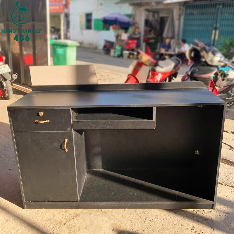 - Mô Tả: Chiếc quầy tiếp tân này có thiết kế hiện đại, nhỏ gọn, rất lý tưởng cho các cửa hàng, quán cà phê, hoặc văn phòng có không gian giới hạn. Mặt ngoài được phối hai màu đen và trắng tạo điểm nhấn nổi bật, sang trọng. Bên trong quầy được bố trí thông minh: có hộc tủ kéo để cất giữ tiền mặt và tài liệu quan trọng, cùng với ngăn kéo rộng để máy tính, bàn phím hoặc máy in hóa đơn. Chất liệu gỗ công nghiệp chắc chắn, bề mặt dễ dàng vệ sinh. Quầy có công năng đa dạng, vừa là nơi giao dịch, vừa là nơi làm việc gọn gàng. Mua quầy thanh lý giúp bạn giảm bớt chi phí đầu tư ban đầu, sở hữu ngay một món nội thất thiết yếu và chuyên nghiệp.