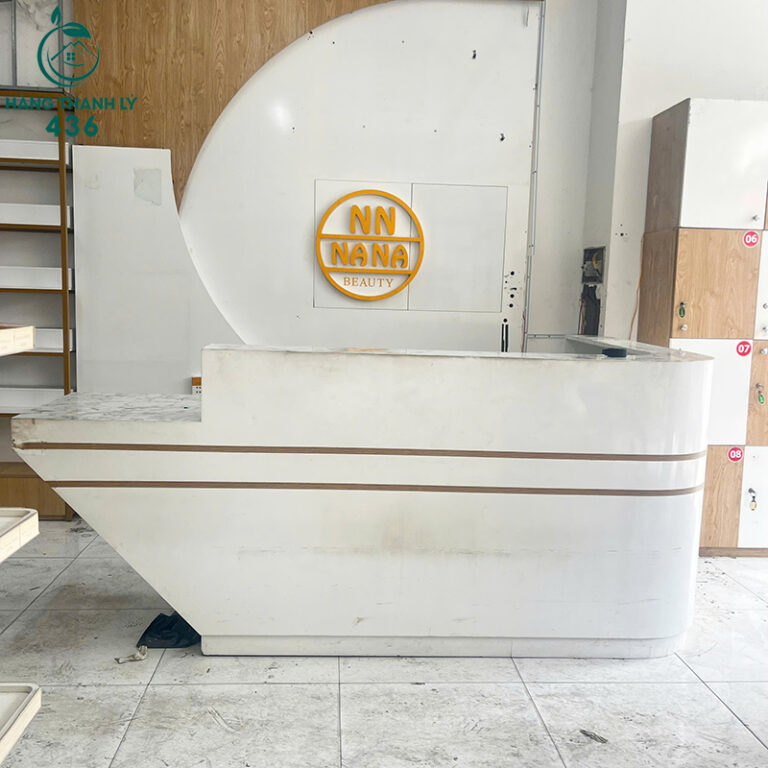 Mô Tả: Mẫu quầy lễ tân cũ trong hình có thiết kế bo cong mềm mại, tạo cảm giác chuyên nghiệp và thân thiện ngay khi khách bước vào. Quầy có mặt rộng, thuận tiện đặt máy tính, sổ sách và vật dụng làm việc. Phần thân cao vừa tầm che khu vực bên trong, giúp không gian gọn gàng hơn. Màu trắng sáng dễ phối với nhiều phong cách spa, salon tóc hoặc thẩm mỹ viện. Quầy còn mới khoảng 90%, kết cấu chắc chắn, mua về chỉ cần vệ sinh nhẹ là sử dụng ngay.