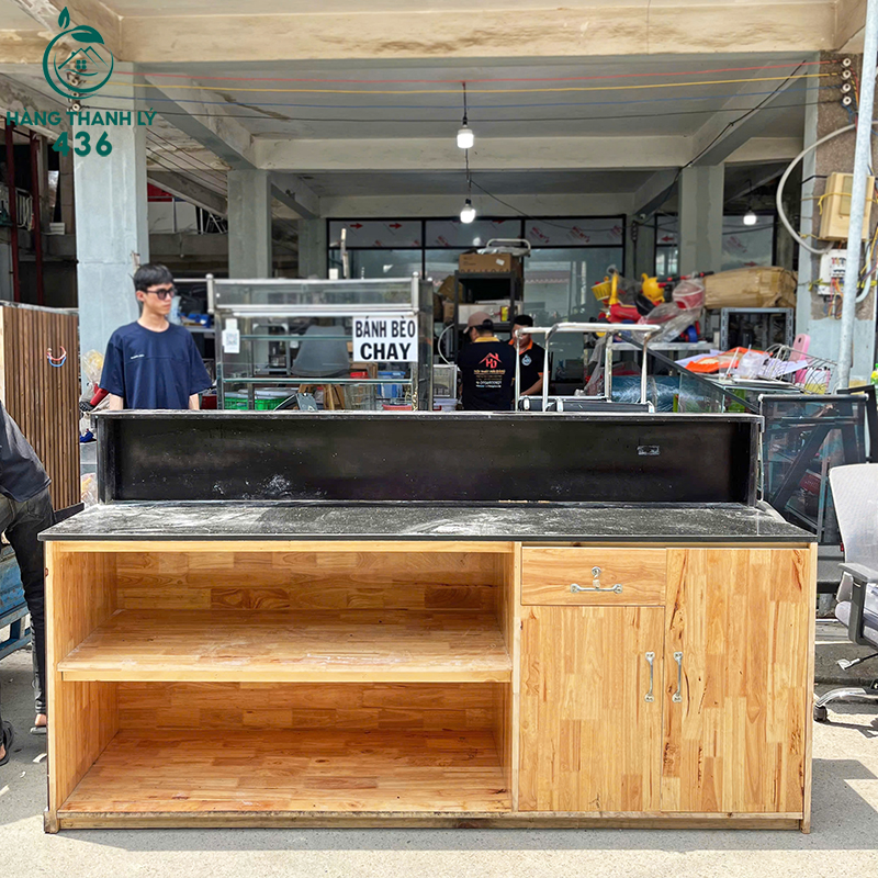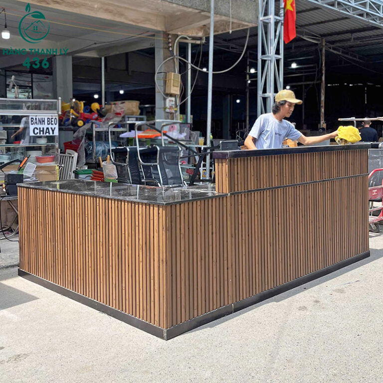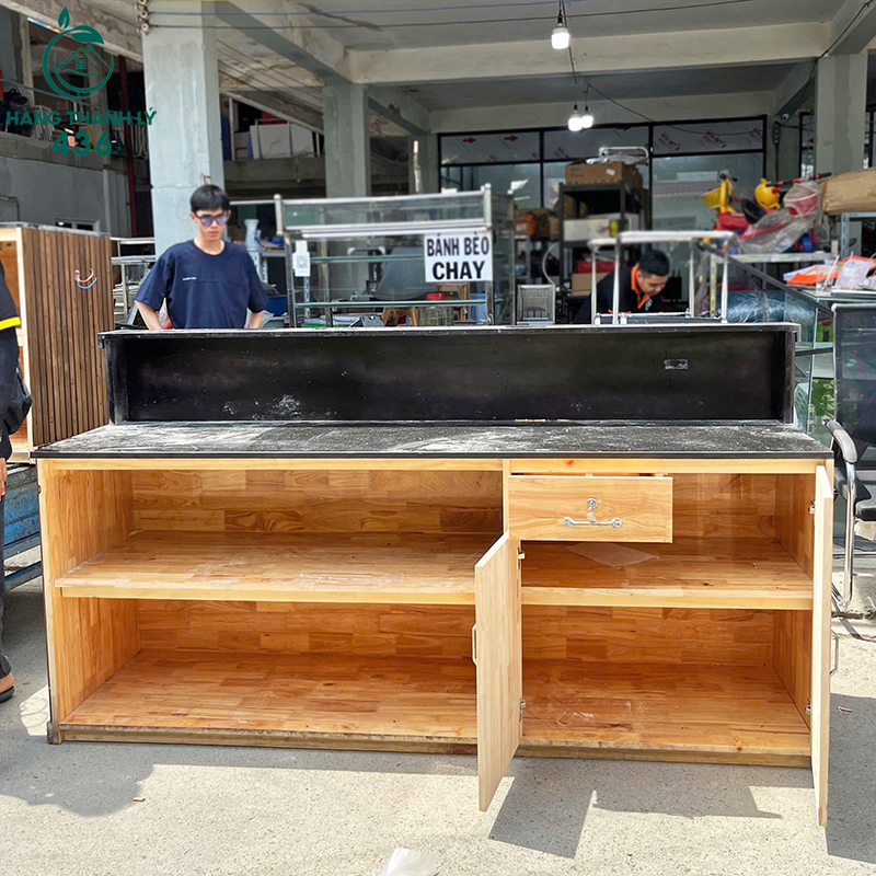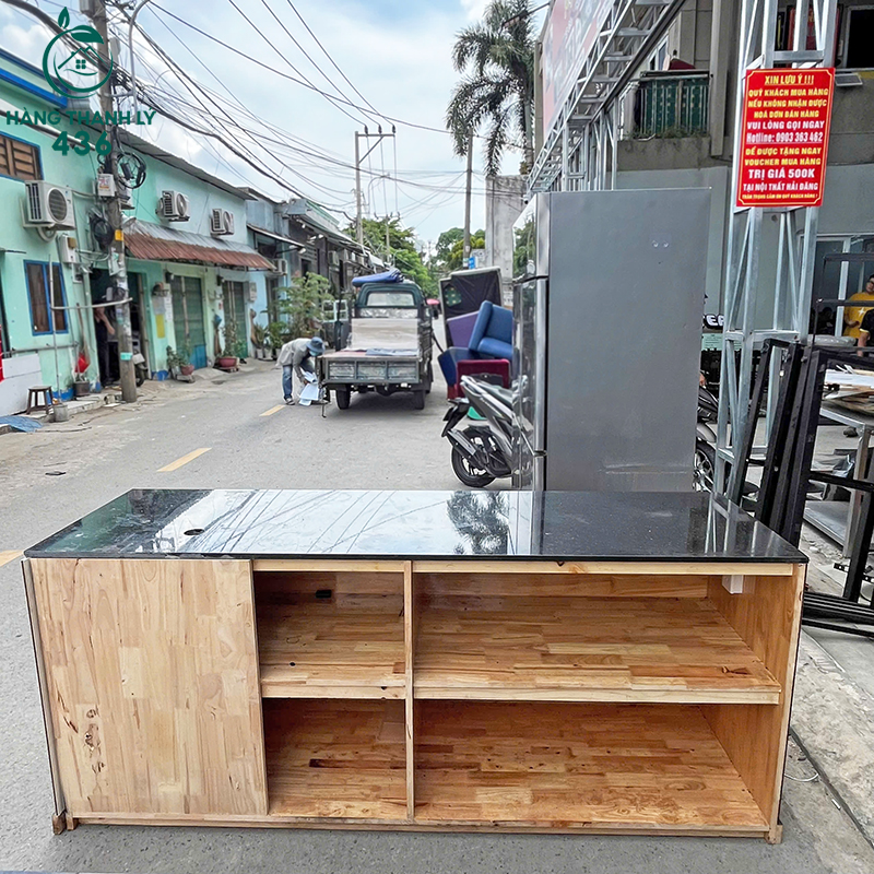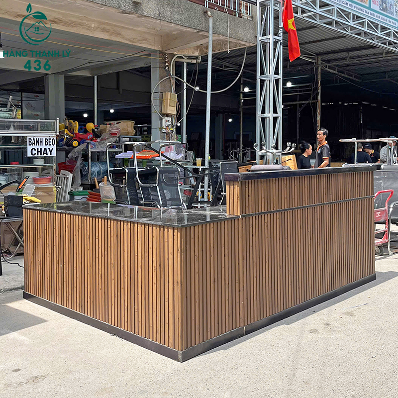 Quầy Lễ Tân Gỗ Cũ Mặt Đá 2M8x2M Hàng Cao Cấp
