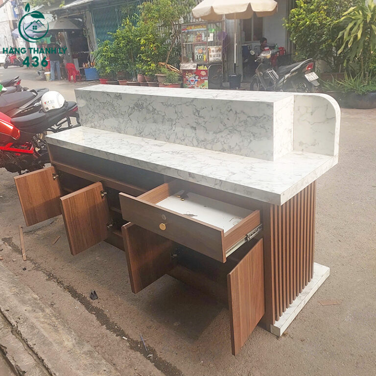 Thanh Lý Quầy Lễ Tân Gỗ Phối Đá Thiết Kế Độc Đáo Mới Đến 90%