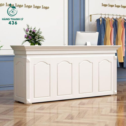 - Mô tả: Quầy thu ngân mang phong cách tân cổ điển với các chi tiết chạm khắc nổi bật. Quầy được làm từ chất liệu gỗ chắc chắn, phủ sơn trắng tinh tế, thích hợp với các cửa hàng thời trang, tiệm spa. Thiết kế này mang lại cảm giác sang trọng và đẳng cấp, tạo ấn tượng tốt cho khách hàng ngay từ lần đầu tiên bước vào. Mặt bàn rộng rãi thuận tiện cho các hoạt động đón tiếp và hỗ trợ khách hàng.