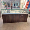 Mô Tả: Chiếc quầy lễ tân này nổi bật với thiết kế cong mềm mại và họa tiết vân gỗ kết hợp thanh ngang màu sáng, mang lại vẻ ngoài ấn tượng và chuyên nghiệp cho khu vực sảnh. Quầy có kích thước lớn, tạo không gian giao tiếp rộng rãi và dễ chịu với khách hàng. Tuy không có hộc kéo riêng, nhưng mặt bàn rộng rãi và không gian phía trong quầy vẫn đủ chỗ cho máy tính, điện thoại và các vật dụng cần thiết khác. Đây là sự lựa chọn lý tưởng cho các công ty, thẩm mỹ viện hoặc cửa hàng muốn thể hiện sự đẳng cấp và khác biệt.