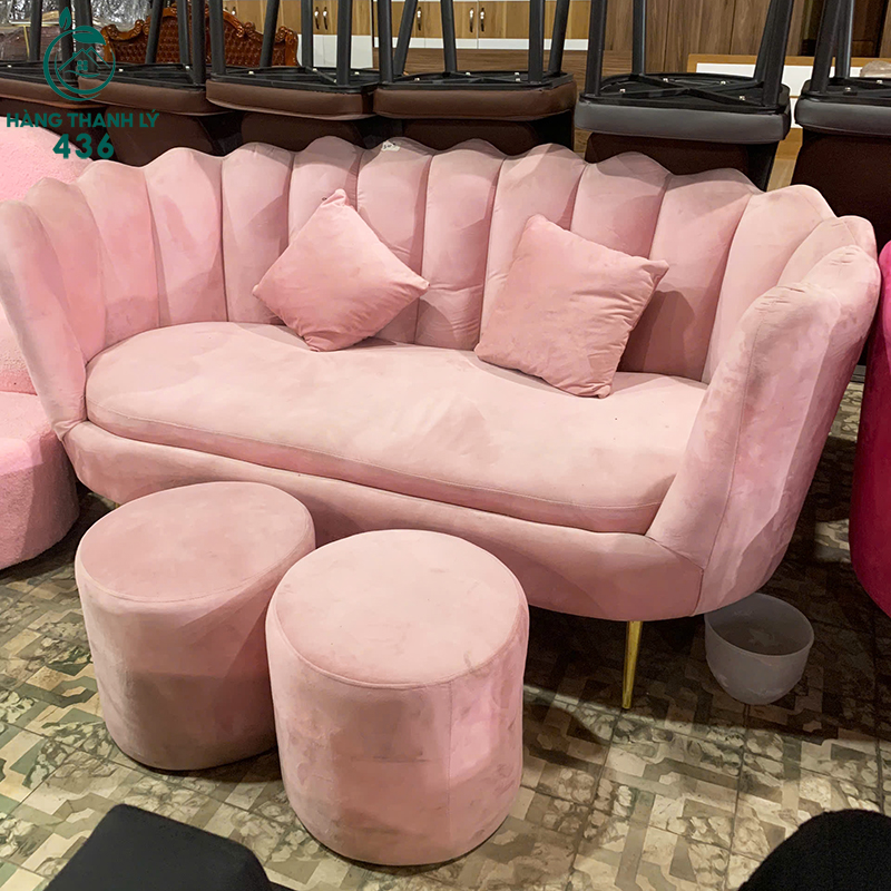 Sofa Cũ Vỏ Sò Màu Hồng Chất Liệu Nhung (Hàng Tồn Kho)