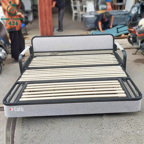 - Mô tả: Giường sofa thông minh là mẫu giường đa năng, kết hợp giữa sofa và giường ngủ tiện lợi. Khung giường làm bằng sắt sơn tĩnh điện chắc chắn, chịu lực tốt, không gỉ sét theo thời gian. Mặt giường dùng ván gỗ ngang đều, tạo độ thông thoáng và nâng đỡ nệm tốt hơn. Phần thành ghế bọc vải màu xám nhẹ, tay vịn ốp nỉ tạo cảm giác thoải mái khi ngồi. Khi cần nằm, bạn chỉ cần kéo phần dưới ra là thành giường đôi rộng rãi. Sản phẩm phù hợp cho căn hộ nhỏ, phòng trọ, homestay, hoặc dùng làm giường phụ trong phòng ngủ gia đình. Dù là hàng thanh lý, giường vẫn còn sử dụng tốt, khung cứng cáp, bề mặt vải sạch sẽ. Đây là lựa chọn tiết kiệm và thông minh cho không gian nhỏ hoặc cần thêm chỗ ngủ linh hoạt.