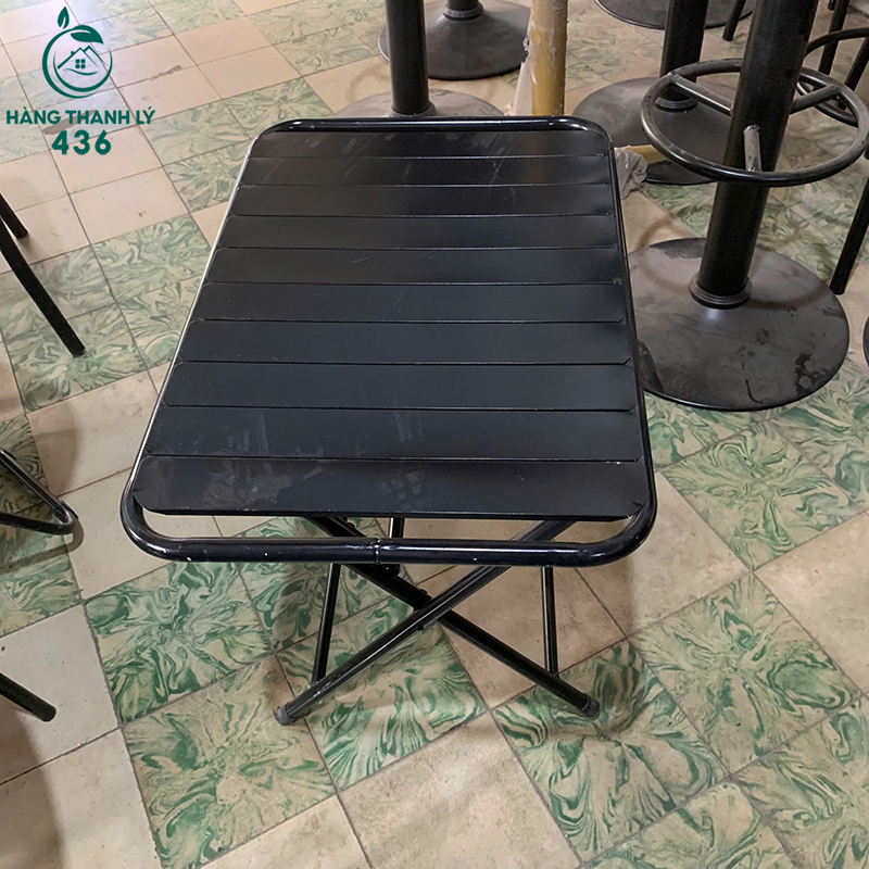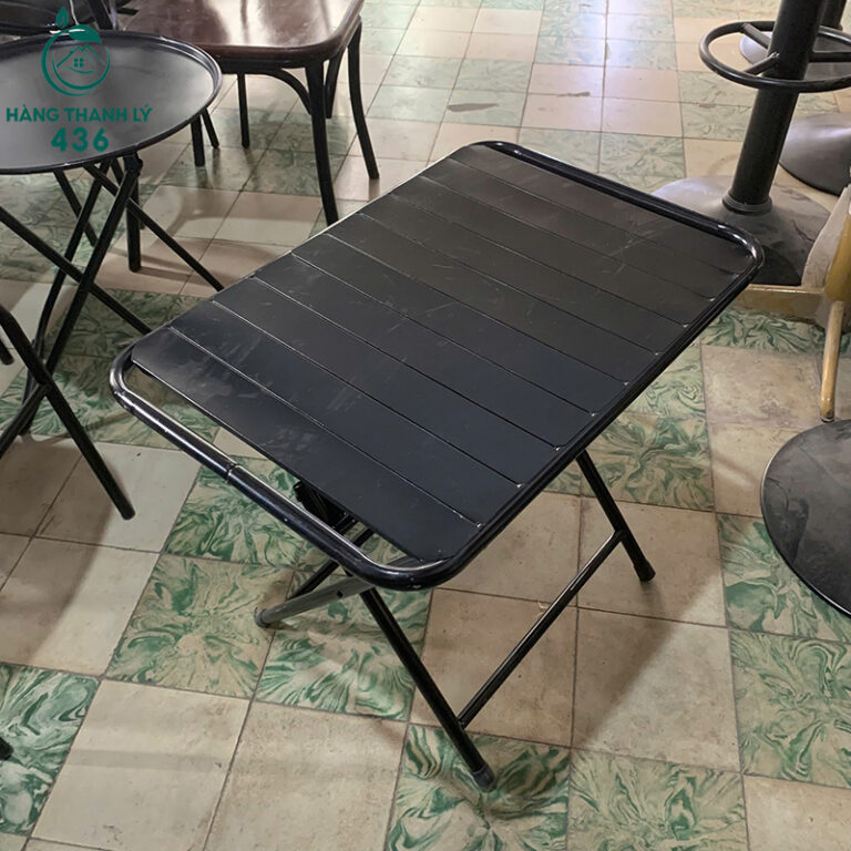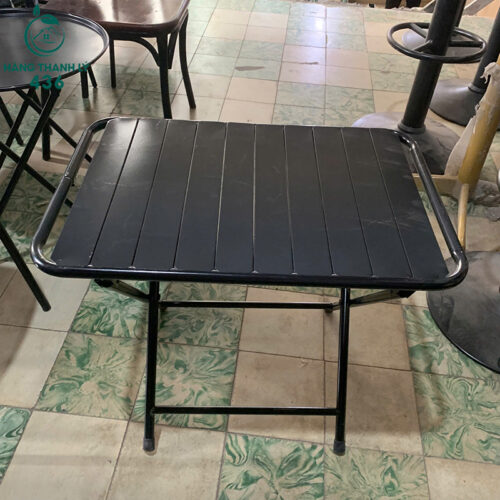 Mô Tả: Sản phẩm là dòng bàn cafe quốc dân với thiết kế mặt nan sắt độc đáo, giúp thoát nước tốt khi sử dụng ngoài trời và dễ dàng lau chùi vệ sinh. Toàn bộ bàn được phủ lớp sơn tĩnh điện màu đen bền bỉ, chống hoen rỉ và trầy xước hiệu quả dưới tác động của thời tiết. Điểm cộng lớn nhất là khả năng xếp gọn linh hoạt, giúp chủ quán dễ dàng thu dọn và tiết kiệm không gian lưu trữ khi không sử dụng. Chân bàn được thiết kế dạng chữ X chắc chắn, có nút cao su chống trượt và bảo vệ sàn nhà. Đây là lựa chọn cực kỳ kinh tế cho các quán cafe vỉa hè, trà chanh hoặc ban công gia đình cần sự gọn nhẹ và độ bền cao.