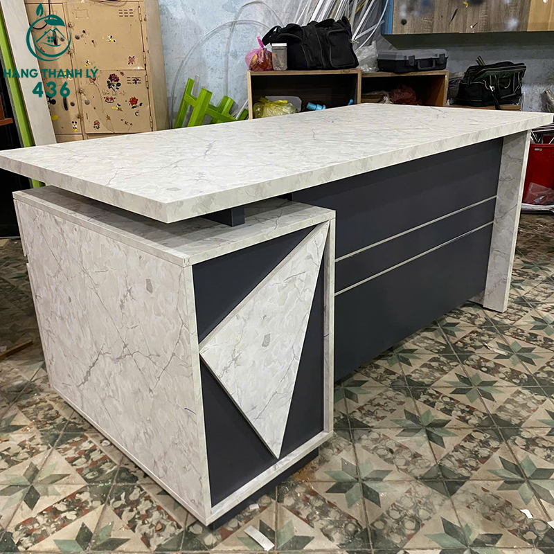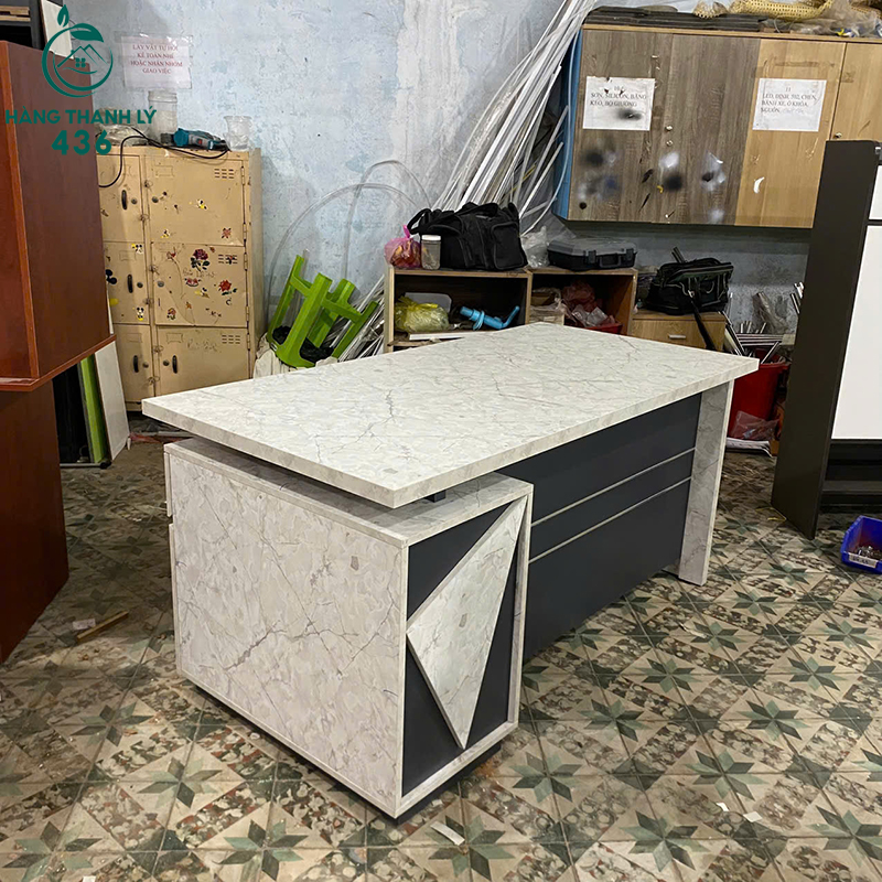 Bàn Giám Đốc Phối Gỗ Và Vân Đá Có Hộc Tủ Liền Khóa Mới 99%