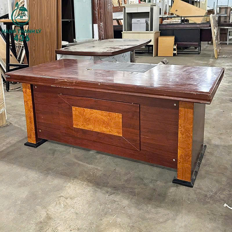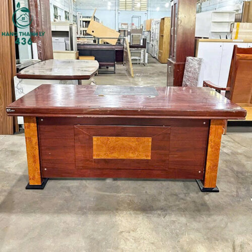 - Mô tả: Bàn giám đốc cũ với thiết kế sang trọng và đẳng cấp, phù hợp cho không gian văn phòng giám đốc. Bàn có kích thước rộng rãi, mặt bàn phẳng và chắc chắn, tạo không gian làm việc thoải mái và hiệu quả. Phần chân bàn được gia cố vững chắc, đảm bảo độ bền và ổn định. Mặt bàn có màu sắc hài hòa, kết hợp với các chi tiết hoa văn tinh tế, mang lại vẻ đẹp cổ điển và trang nhã.