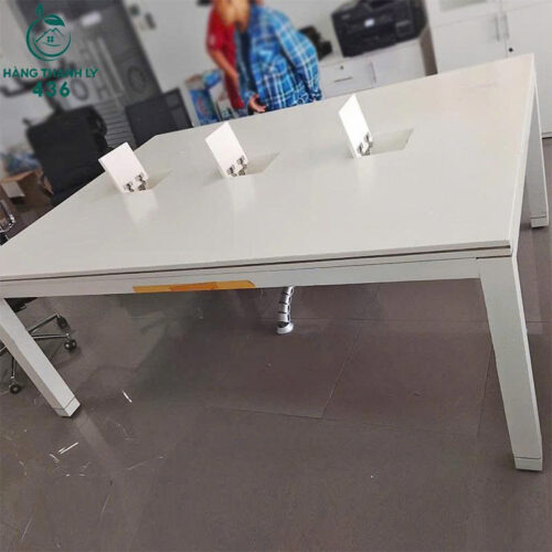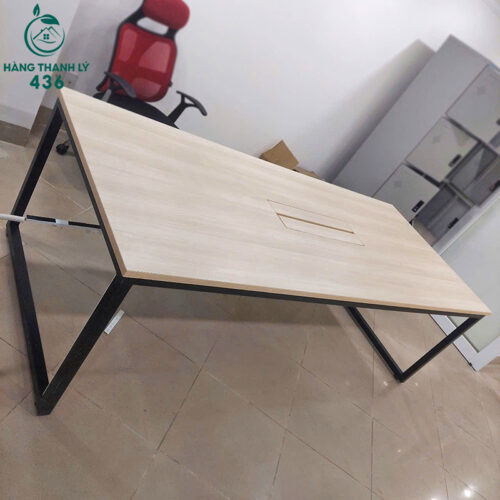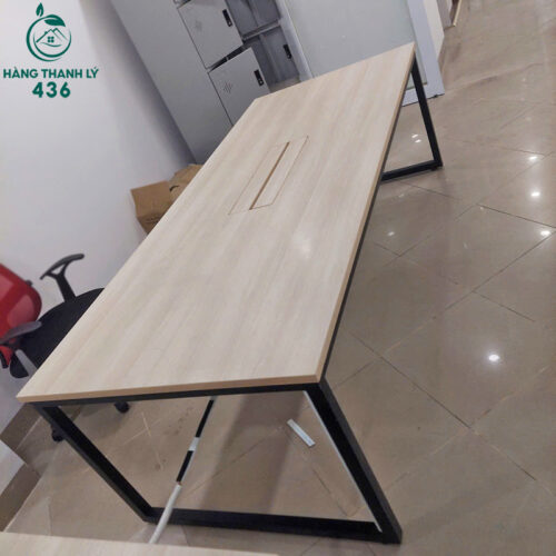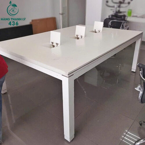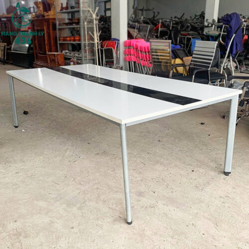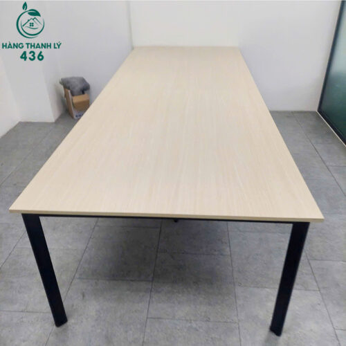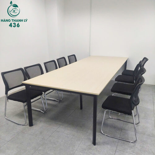 - Mô tả: Bàn họp mặt chữ nhật, kích thước tiêu chuẩn, còn rất đẹp, giá rẻ nhưng độ bền cao. Sản phẩm có kiểu dáng đơn giản nhưng thực dụng, mặt bàn rộng có thể sử dụng trong phòng họp hoặc dùng làm bàn làm việc nhóm.