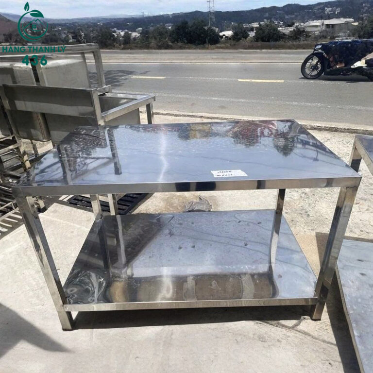 Mô Tả: Sản phẩm bàn inox 2 tầng thanh lý là giải pháp tối ưu cho các không gian bếp công nghiệp, quán ăn hoặc khu vực sơ chế thực phẩm. Với chất liệu inox cao cấp, bàn sở hữu bề mặt sáng bóng, có khả năng chống gỉ sét và chịu được độ ẩm cao trong môi trường nhà bếp. Thiết kế 2 tầng thông minh giúp tăng gấp đôi diện tích lưu trữ, tầng dưới có thể tận dụng để chứa xoong nồi, gia vị hoặc dụng cụ làm bếp rất gọn gàng. Kết cấu khung chân vững chãi, các mối hàn chắc chắn đảm bảo khả năng chịu lực cực tốt khi băm chặt hoặc để vật nặng. Bề mặt phẳng mịn giúp việc vệ sinh, lau chùi dầu mỡ trở nên nhanh chóng và dễ dàng. Đây là món đồ nội thất bền bỉ, giúp tiết kiệm chi phí đầu tư đáng kể.