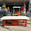 - Chất liệu: Khung sắt và mặt bàn được chế tác từ gỗ.