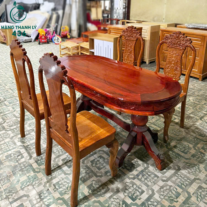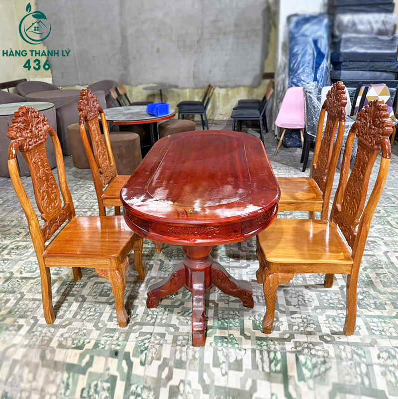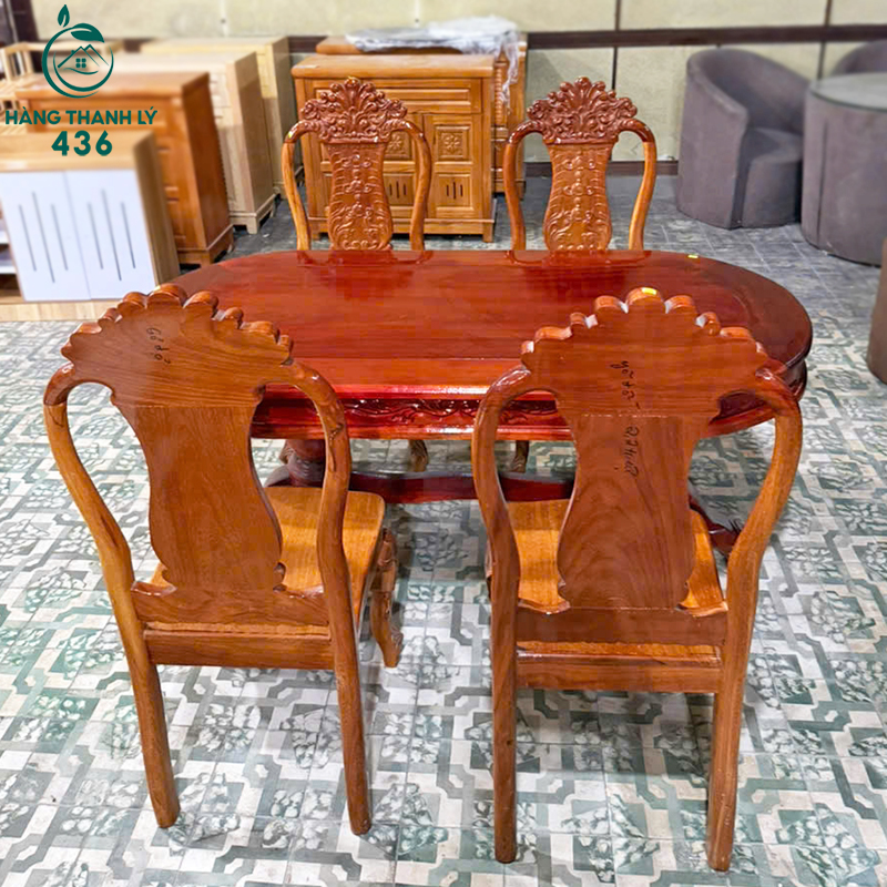 Thanh Lý Bộ Bàn Ăn Gỗ Đỏ 4 Ghế Chạm Khắc Mới 99%