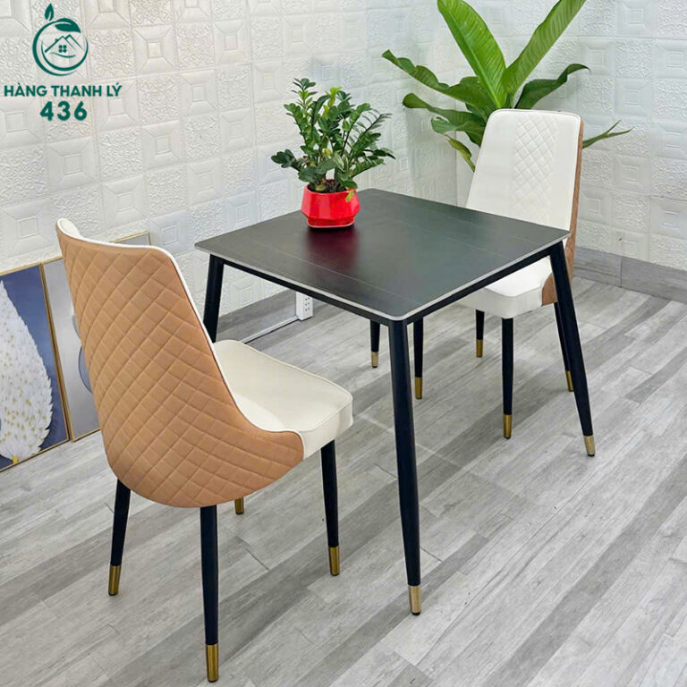 Thanh Lý Bộ Bàn Ăn Mặt Gỗ 4 Chân Kèm Ghế Da Cao Cấp Mới 99%