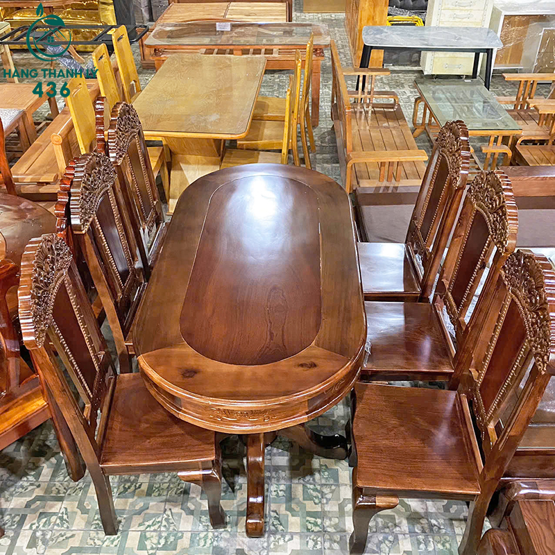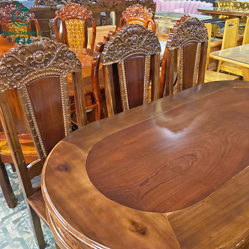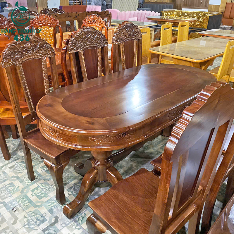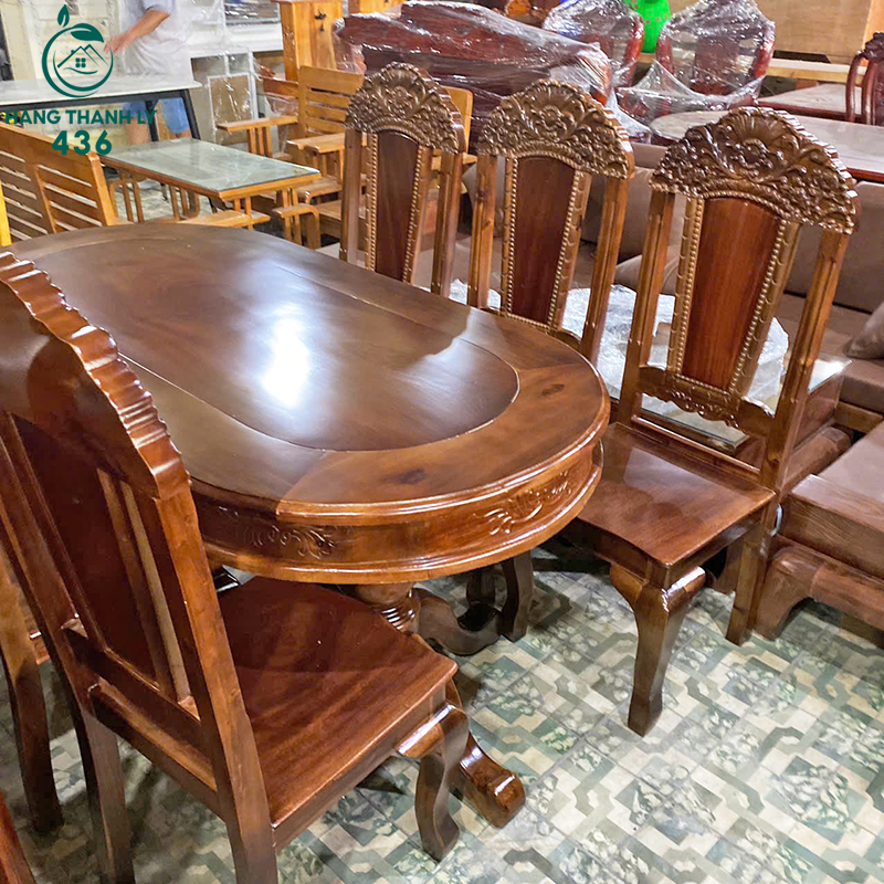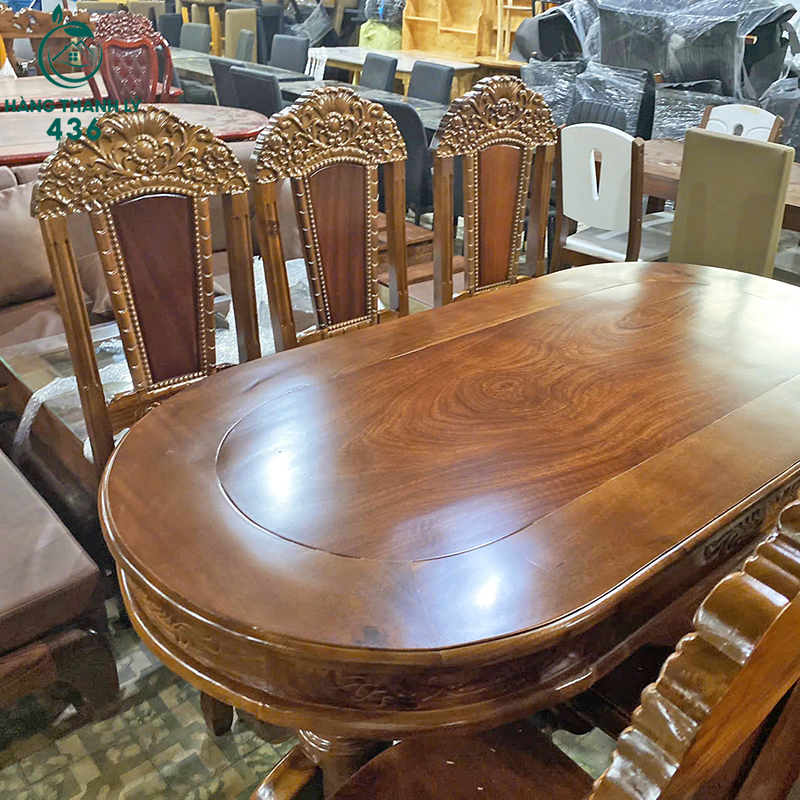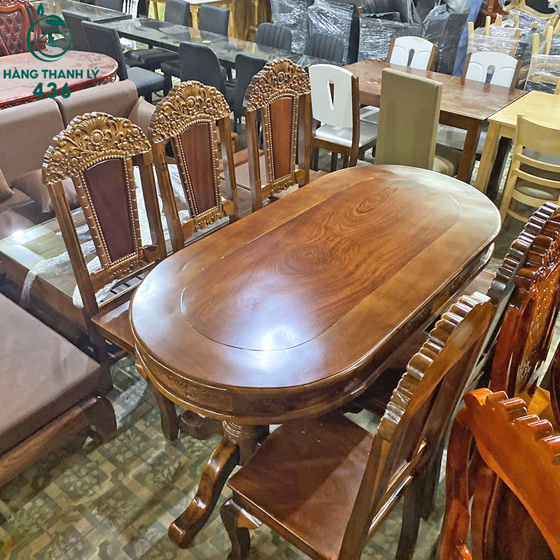 Thanh Lý Bộ Bàn Ăn Oval 6 Ghế Chạm Khắc Tinh Xảo Mới 99%